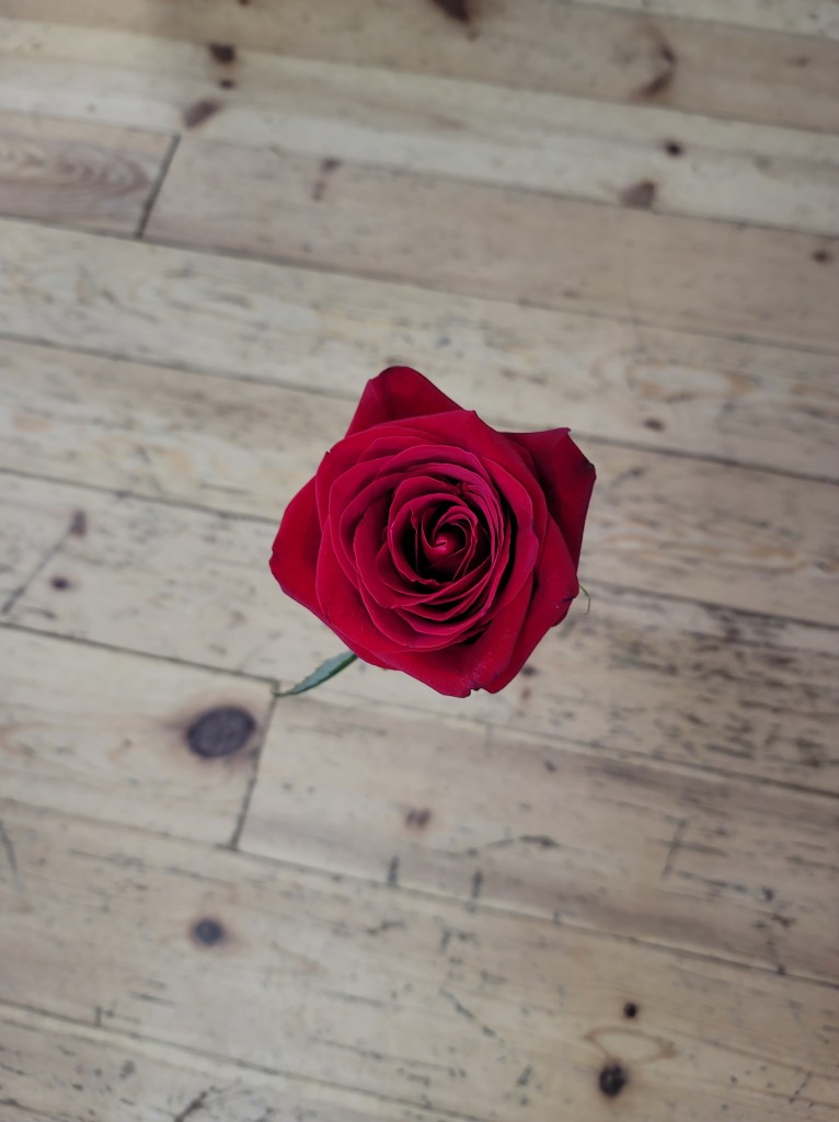 My husband and I were away on a relationship building weekend. Another couple was staying at the same place for their wedding anniversary. My husband had been joking around with them, being friendly. Later that evening the lovely lady delivered to me one of her anniversary roses and a couple of drinks for Tim and I. It really made my weekend. How much more beautiful because it was unexpected and just plane kind!